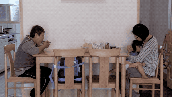 我一直都带着孩子工作。有几个场景,都是用一种很奇怪的姿势在拍。因为要避免孩子进入现场。像有一幕我妈坐在后阳台,我用一只脚顶着后阳台的门,然后用一种很奇怪的姿势拿着摄影机去拍我妈妈那一段的谈话。