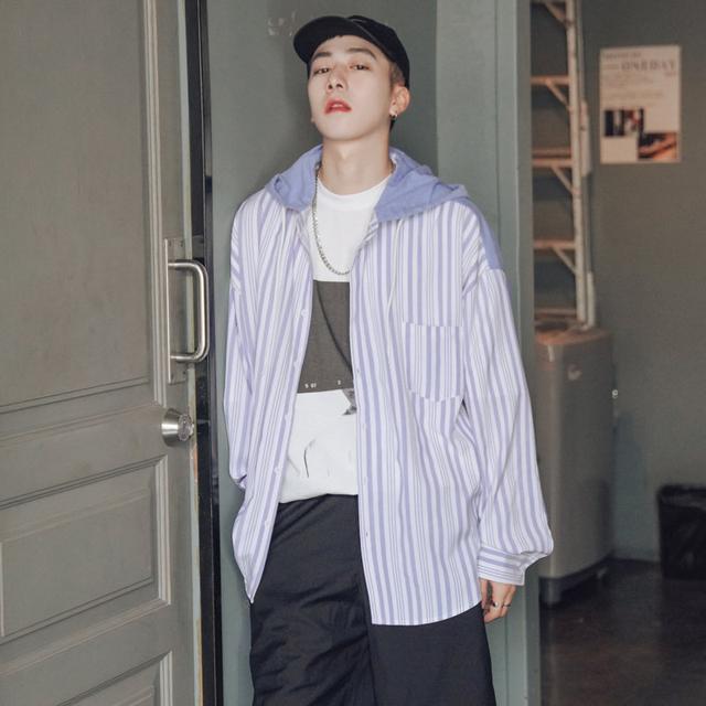 这款衬衫设计感超强的,前幅以清新亮丽的条纹元素装饰,后幅以简单的纯色作为拼接,前后不一致的设计,给人带来意想不到的惊喜。休闲的连帽设计,突破了传统衬衫的刻板和严肃,增添了几分活泼风采。