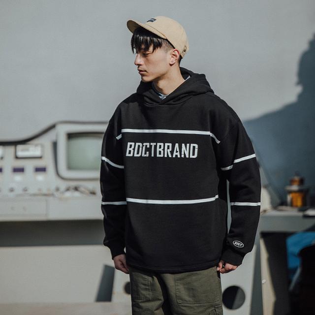 丰满厚实的毛圈布面料,手感柔软,穿着倍感舒适。宽松落肩袖设计,立体有型,充斥着满满的街头风。白色条纹及其字母元素的注入,瞬间提升了整体的潮流感,上身耀眼吸睛。