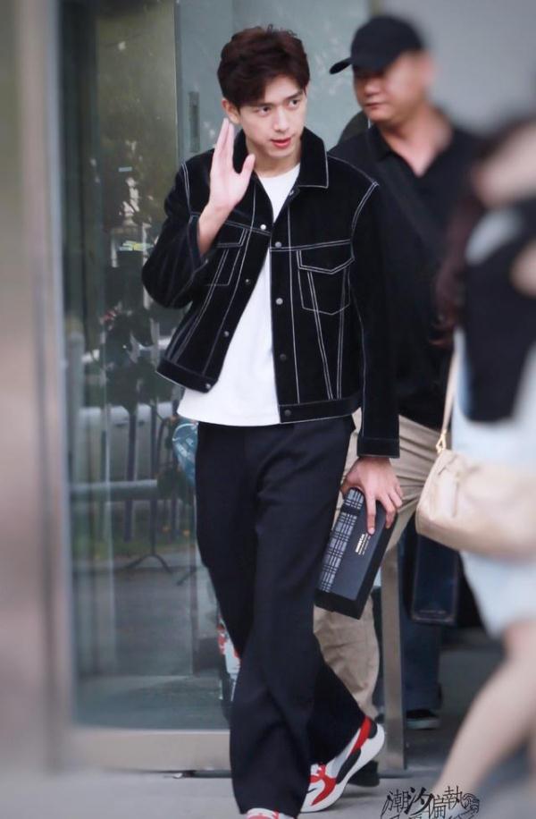 短款的黑色明线款工装外套搭配上一款白色T恤,下半身黑色宽松休闲长裤,再加上一双运动鞋搭配,充满阳光帅气,给人一种清爽,积极向上的感觉。怪不得杨紫会看上他呢