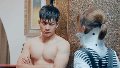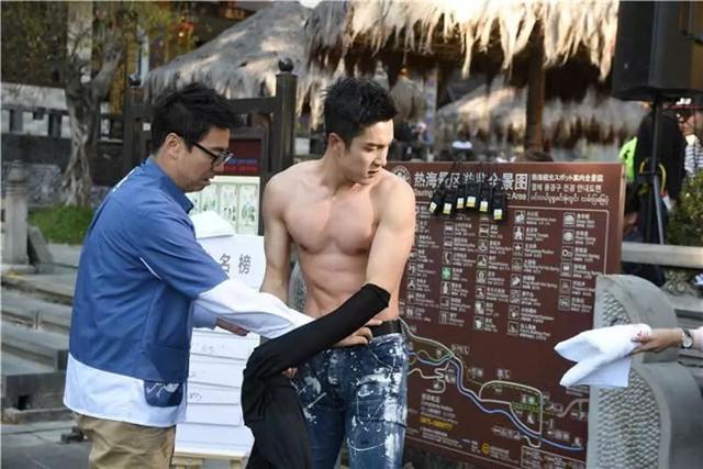 在综艺节目里,导演组也常常设计一些他可以秀肌肉身材的桥段。