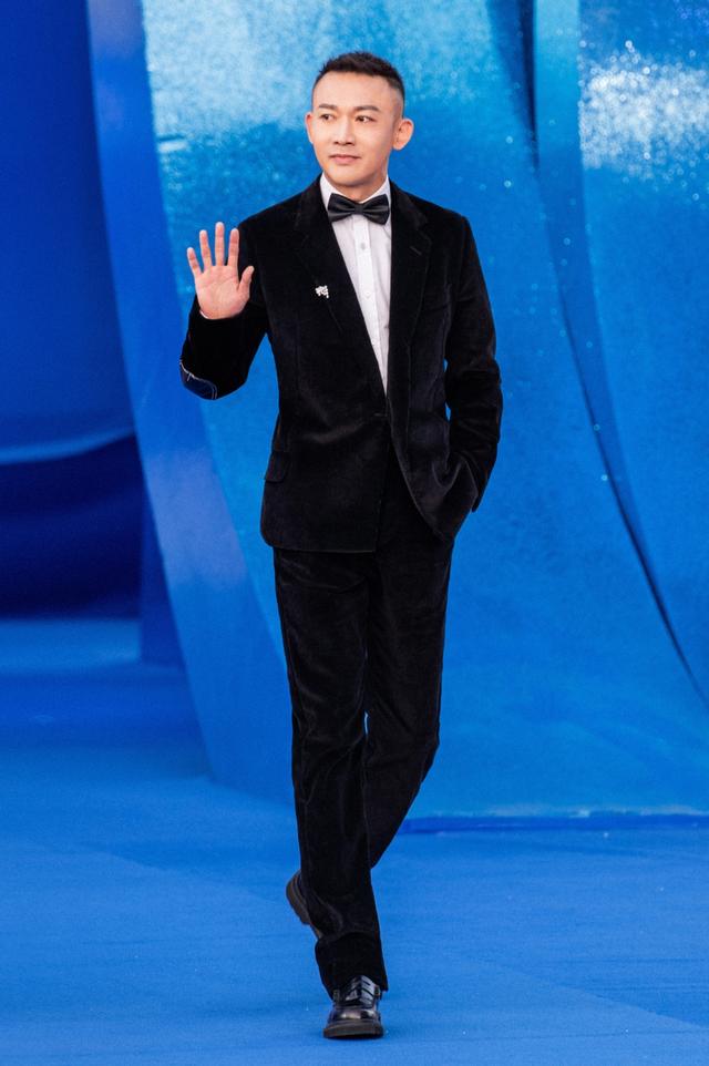 酒红色的西服不像他人口中的妖艳,也不像女士穿上的妩媚,而是更多的端庄和正式。采用了枪驳领的设计,立体有型,领口的黑色蝴蝶结,也增加了整体的绅士风度,虽然酒红色并不属于亮色系,但和聂远的肤色很是搭配,稍微偏暗的酒红,完全没有和黄色皮肤的聂远形成巨大的反差,反而看起来更加具有融合感。