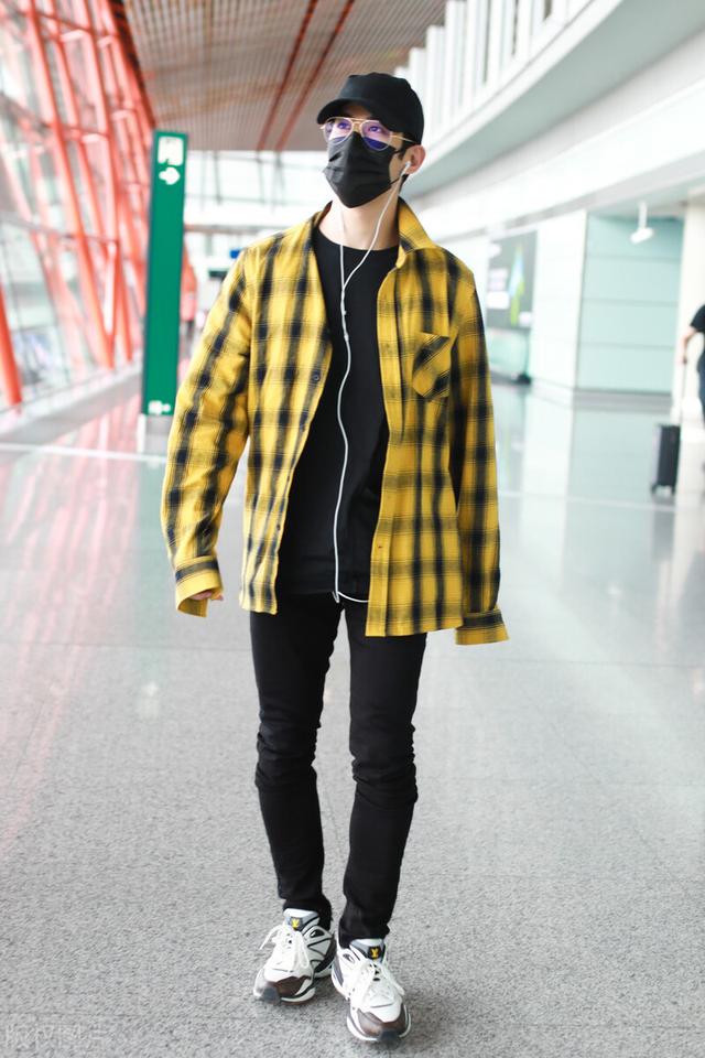 李治廷的这一身机场look,让我们知道原来格子衬衫也可以穿得特别好看,和其他常见的红黑白格子衬衫不同的是,他选择了一件黄色加黑色的,给人一种眼前一亮的感觉,整个人的气质也变得时尚起来。黄色是一种明亮的颜色,和暗淡的黑色搭配起来,大气之余更加沉稳,这才是格子衬衫应该有的视觉效果。