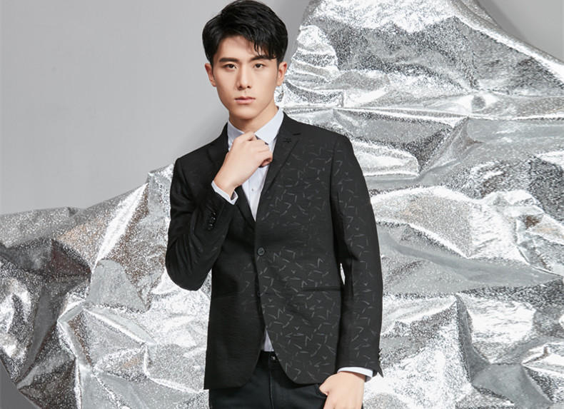 西装中,经典款式的应该算是纯色款了。对于黑色来说,穿出质感是凸显其高贵的重要方面,而质感首先是布料质量上要有追求,不能软塌塌地贴在身上,撑得起个人气场是关键。而花纹则是凸显西装质感的重要方面,并且能够展示自身个性,让你在人群中脱颖而出。